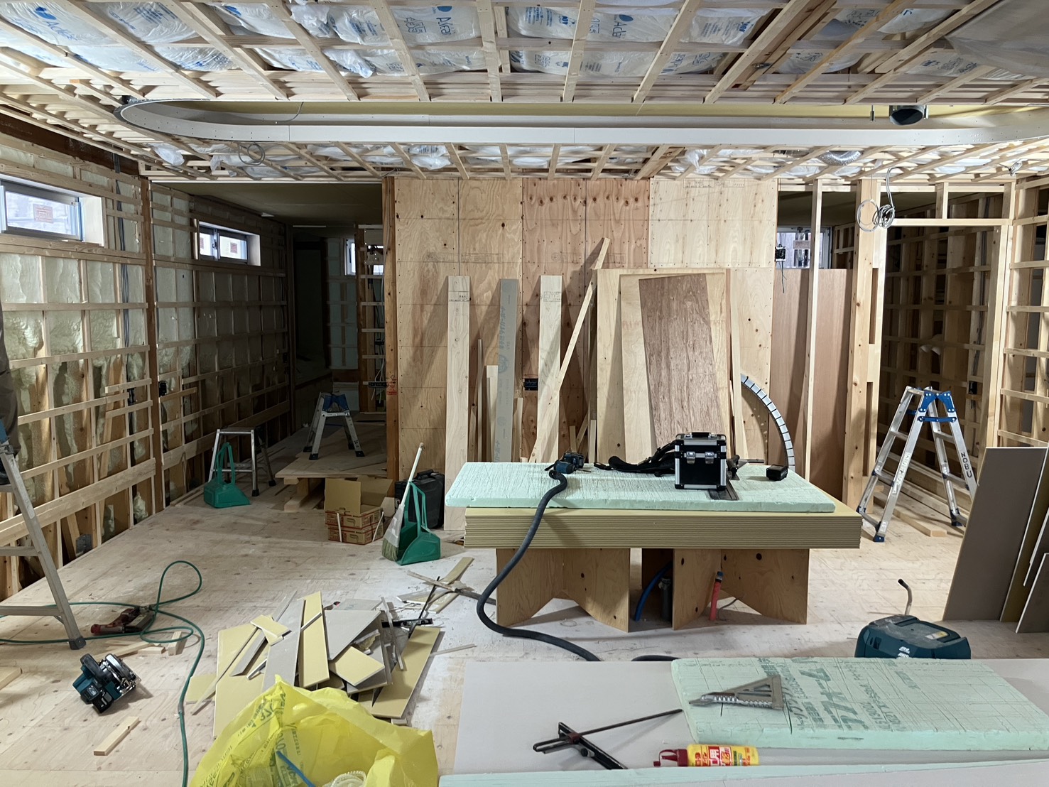 現在進行中の物件内に、天井がRの形をしている部分があります。過去にもR型の天井・壁等を施工させていただいた物件もございますが、